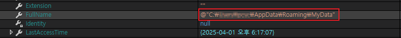 제 PC의 \AppData\Roaming\MyData 위치에 저장을 하는 것일까요....?
