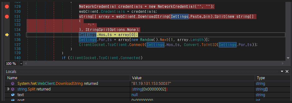 아쉽게도 해당 코드에는 특정 C2 서버의 ip와 통신을 하는 건 아닌 것 같구