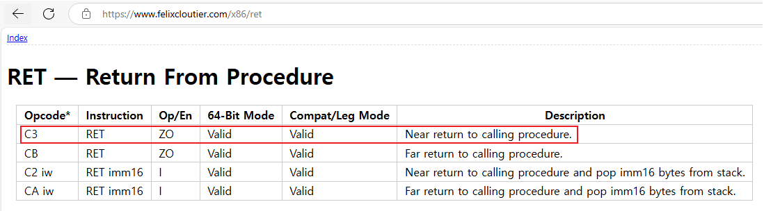 system call 직접 명령어로 0xC3은 RET가 맞쥬?